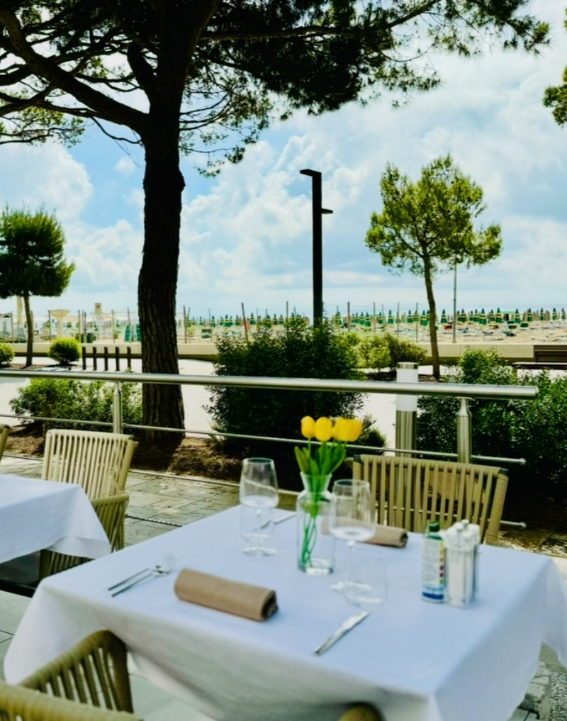Dalla nostra terrazza è possibile godere di un incredibile vista sul mare, dove si può ammirare il cielo che si tinge di rosso al tramonto questi due elementi compongono l’incantevole panorama che la nostra posizione ci offre